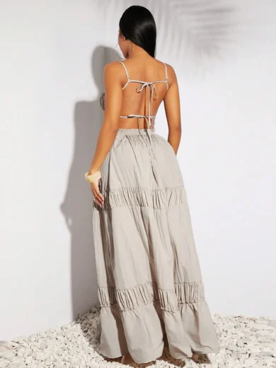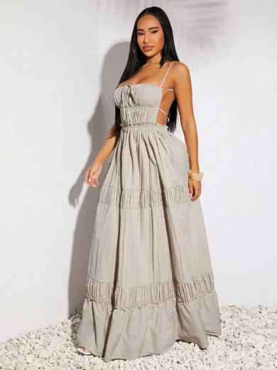 $285.82 – $290.79Price range: $285.82 through $290.79Women's Solid Color Date Night A-Line Sleeveless Waist Fitted Elegant Dress, Autumn,Summer Dresses For