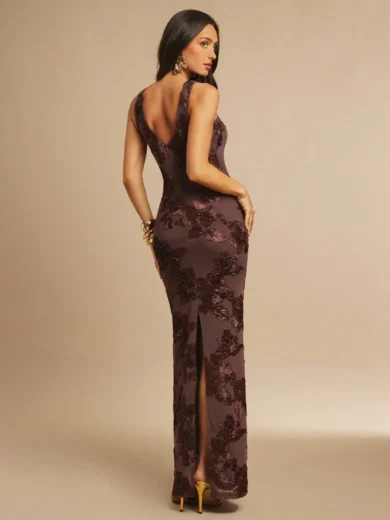 $280.55 – $362.40Price range: $280.55 through $362.40Women's Sexy Brown Floral Heavy Embroidery Backless Tie Party Dress, Simple And