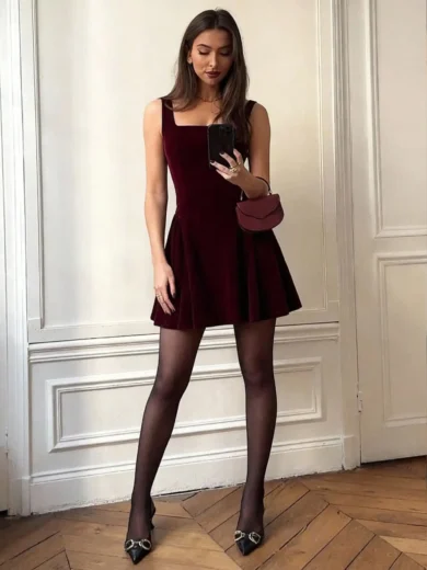 $363.40Elegant French Romantic Velvet Backless Cinched Waist Mini Dress, Suitable For Daily, Date, Holiday, Formal Dinner