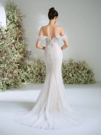 Off-Shoulder Mermaid Lace Wedding Dress with Embroidered Floral Detail
