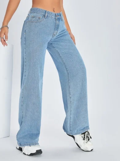 Solid Color Pocket Casual Versatile Wide-Leg Jeans