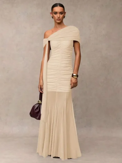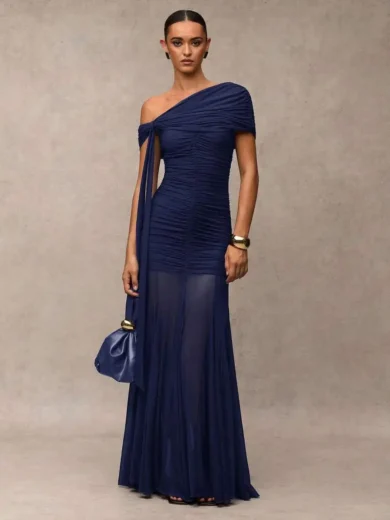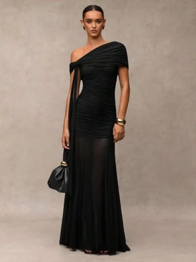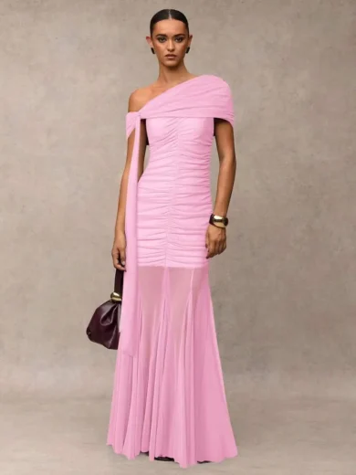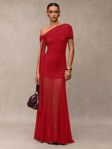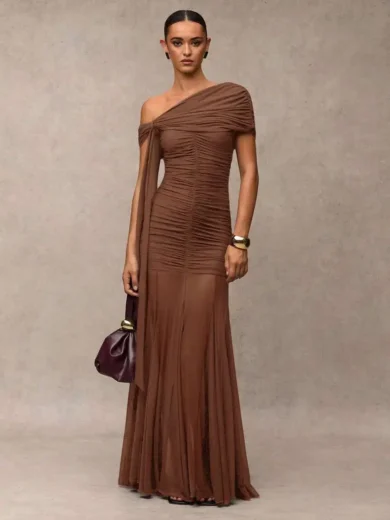 Be the first to review “Burgundy One-Shoulder Ruched Gown with Flowing A-Line Skirt”
