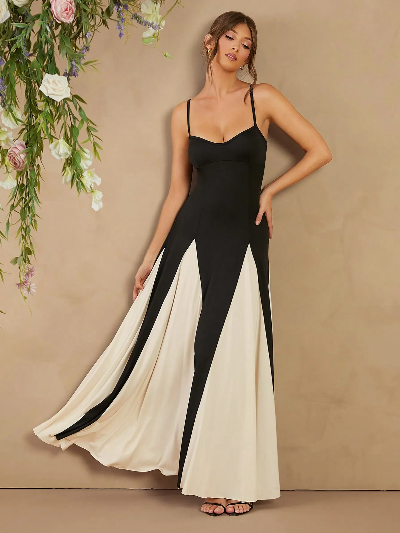 Be the first to review “Elegant Black And White Dress With Spaghetti Straps”