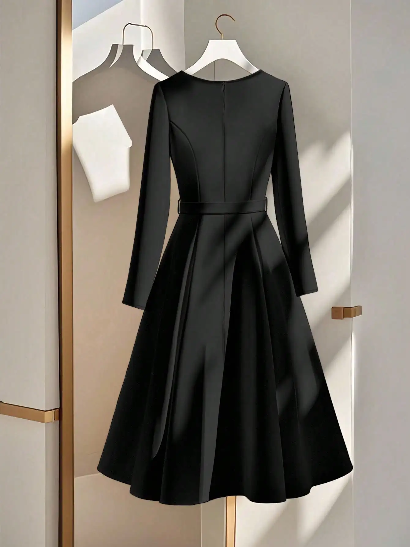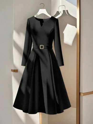 Be the first to review “Elegant Cream Long Sleeve A-Line Dress with Metal Buckle Belt”