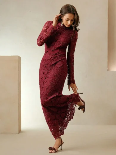 Be the first to review “Women’s White Floral Lace Long Sleeve High Neck Midi Dress”